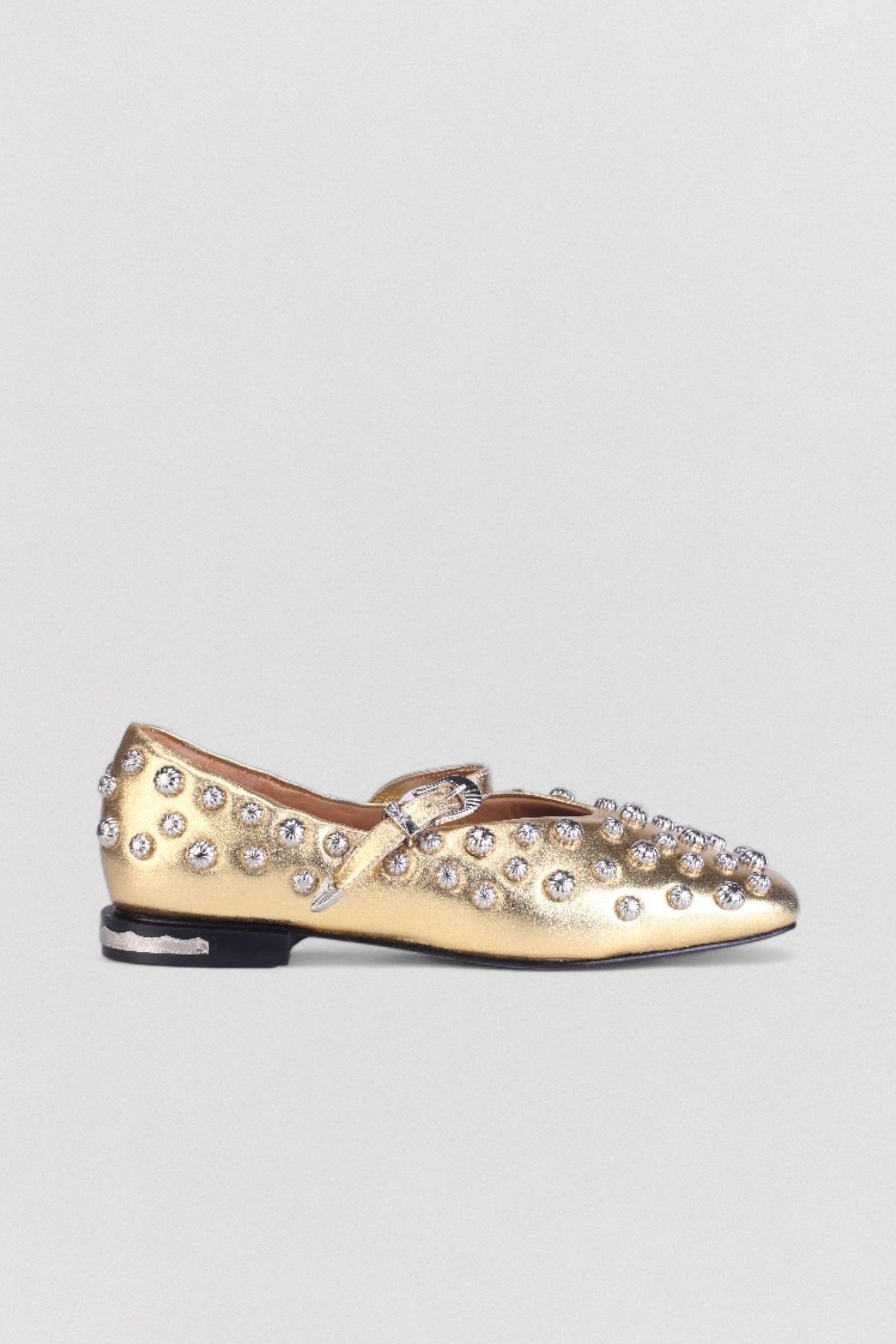The Toga AJ1374 in Metallic Gold Leather Flats is unapologetically bold—where glam meets grit. This Mary Jane flat is crafted from shimmering gold leather and adorned with signature silver Western studs, adding texture and attitude to its classic silhouette. Finished with a sculpted heel insert and engraved buckle detail, this shoe is a statement of fearless femininity. Whether styled with minimal looks or maximal layers, it commands attention. Available exclusively at LABOUTIK Bali—the only curated designer fashion destination on the island.
