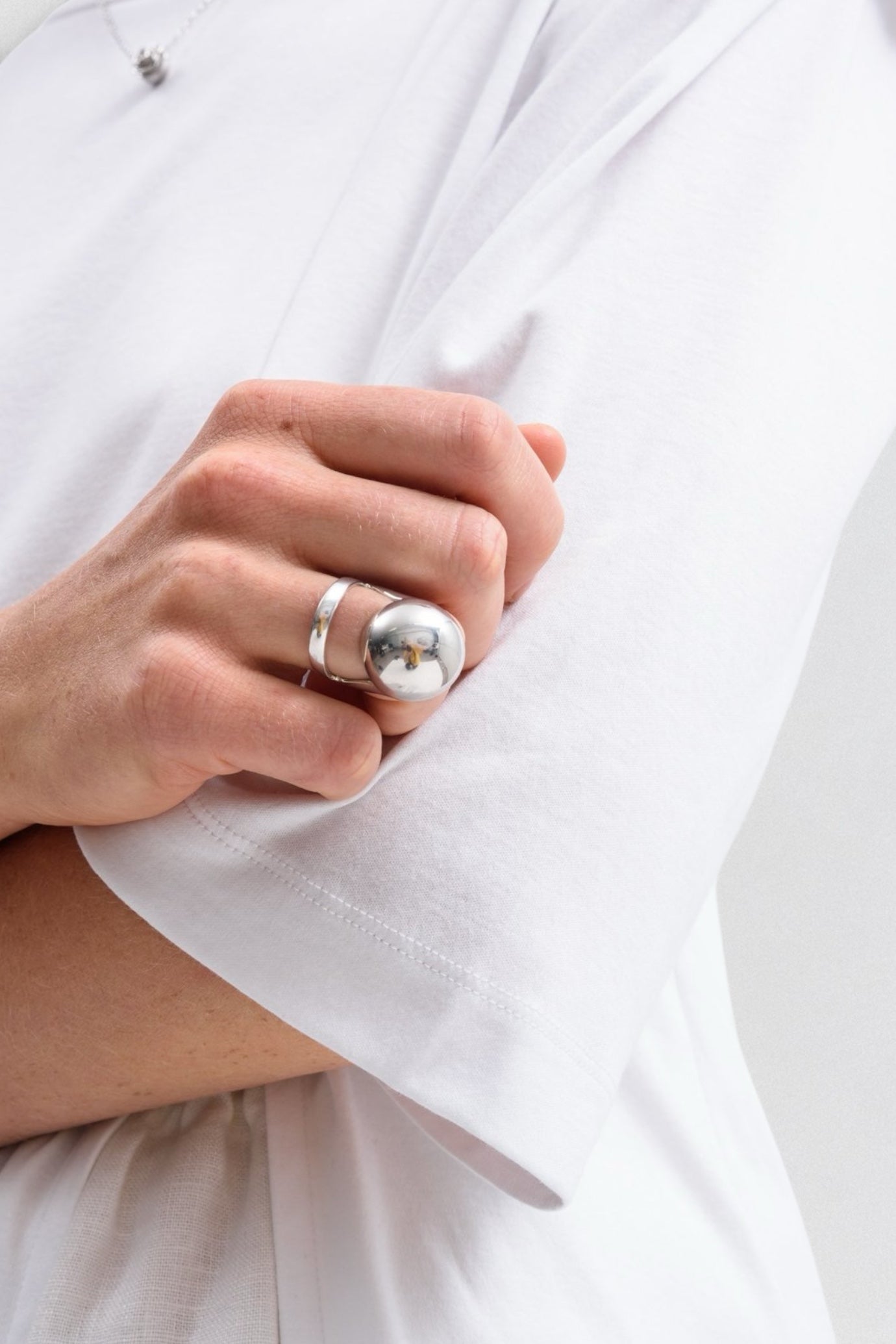 Alan Crocetti’s Armadillo Joint Ring reimagines the anatomy of adornment. Handcrafted from 925 sterling silver, this bold silhouette fuses a minimal band with a polished, oversized knuckle dome — creating a sculptural, futuristic accent piece. Worn solo or layered, it’s a statement in form and function, challenging the boundaries of conventional jewelry.