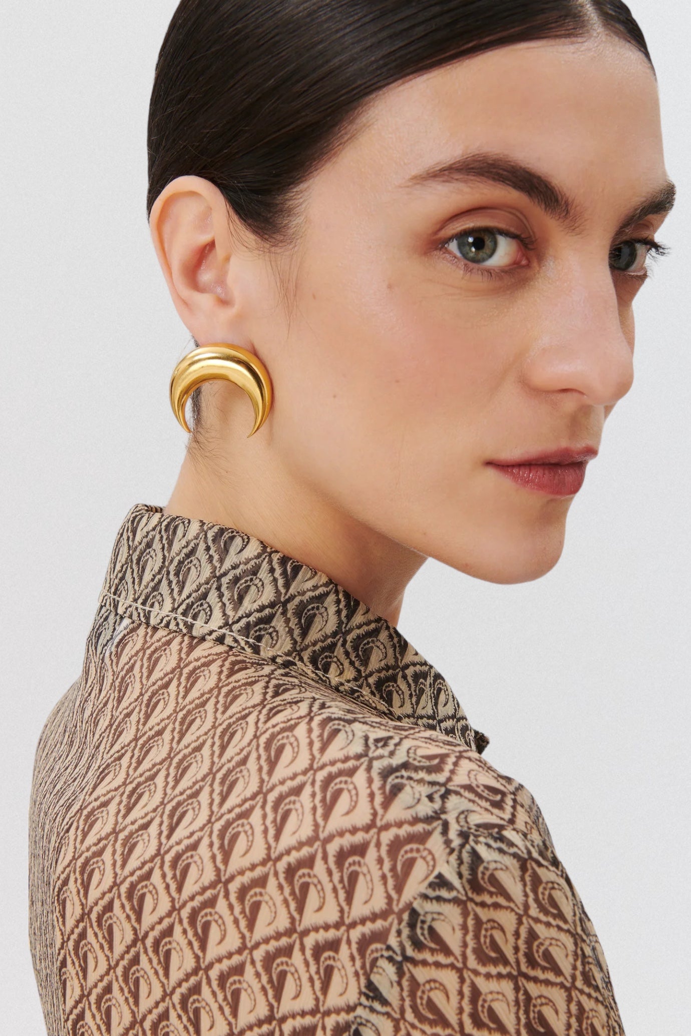 This runway-style shirt is tailored just for you in a chic beige hue, featuring an all-over moon diamond print that adds a touch of elegance. It includes a classic collar, a button closure, long sleeves, and buttoned cuffs, ensuring a sophisticated and personalized fit.