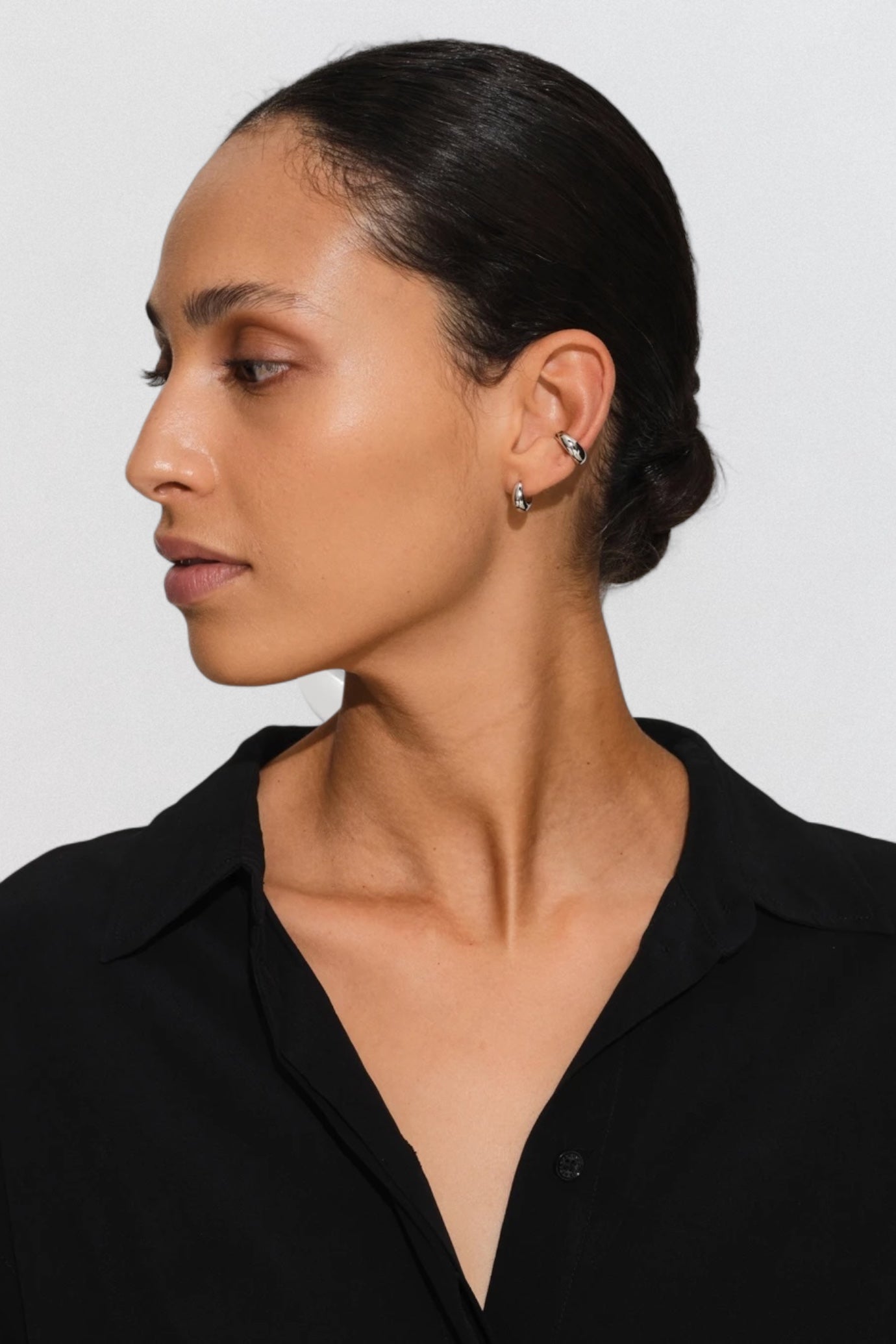 The Ear Cuff Slim is a classic ear cuff designed to be worn alone or combined with other ear cuffs and earrings from our collection. Create contrasts by combining with gold, or stack up with one of our paved options.
