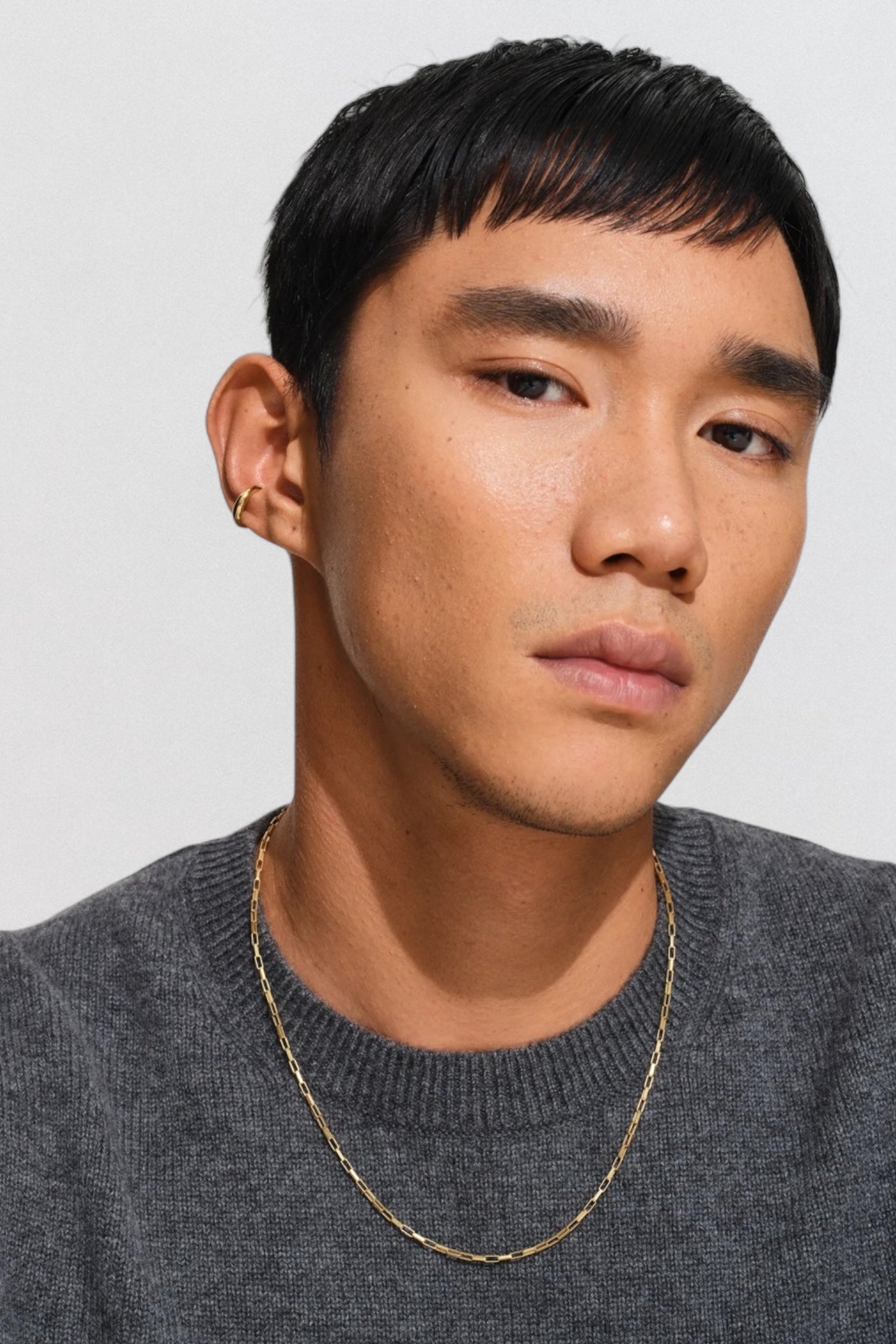 The Ear Cuff Slim Gold is a classic ear cuff designed to be worn alone or combined with other ear cuffs and earrings from our collection. Create contrasts by combining with silver, or stack up with one of our paved options.