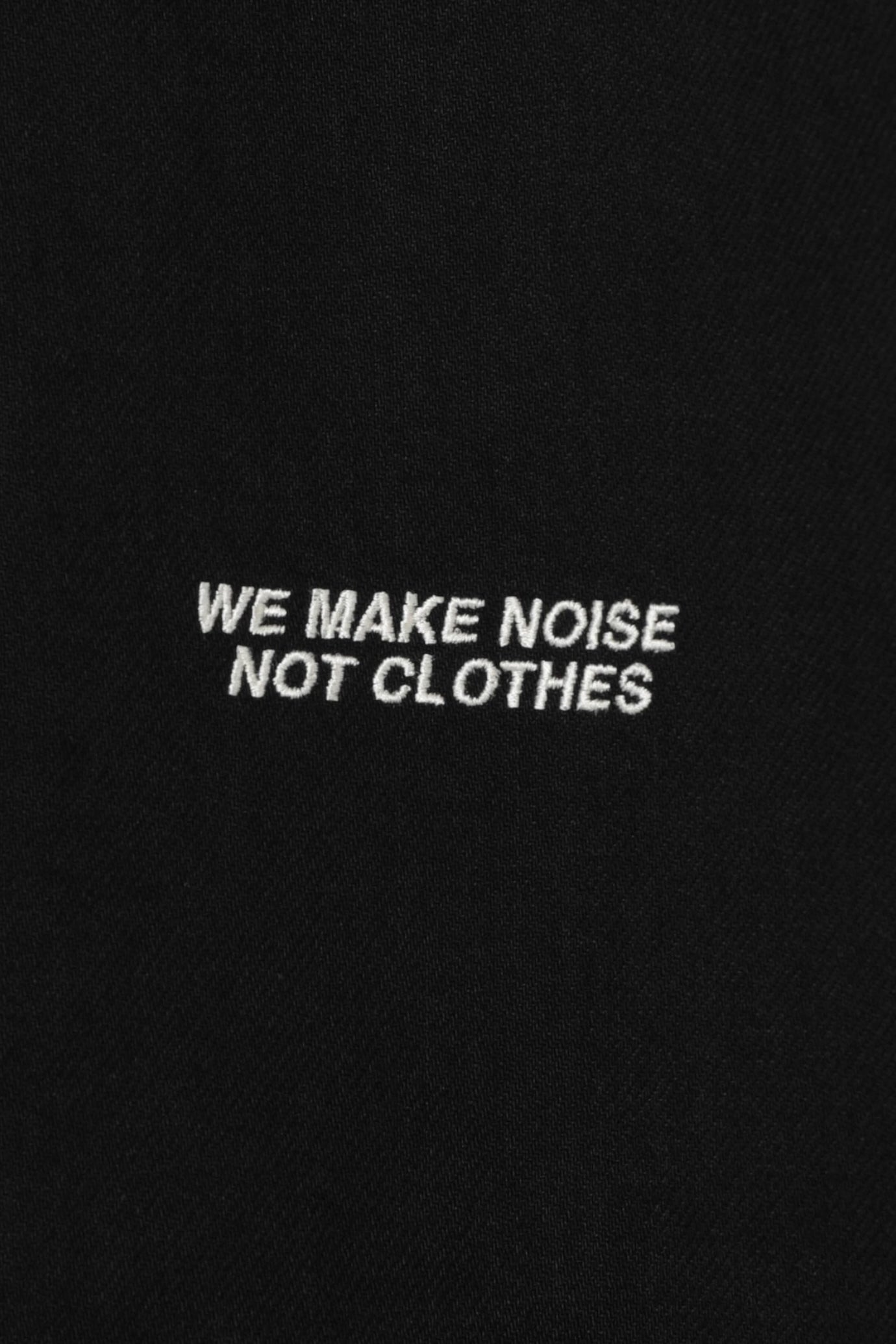 The “For All Rebels” Coach Jacket by Undercover fuses utilitarian outerwear with subcultural attitude. Cut from lightweight polyester and lined with soft cupra, this relaxed-fit jacket features subtle embroidery at the chest and a striking graphic print across the back. Welt pockets, a drawstring hem, and snap button closure nod to classic coach jacket codes, while the rebellious spirit of Undercover shines through in the statement message: “For All Rebels”. A modern wardrobe staple that embodies both edge and ease.