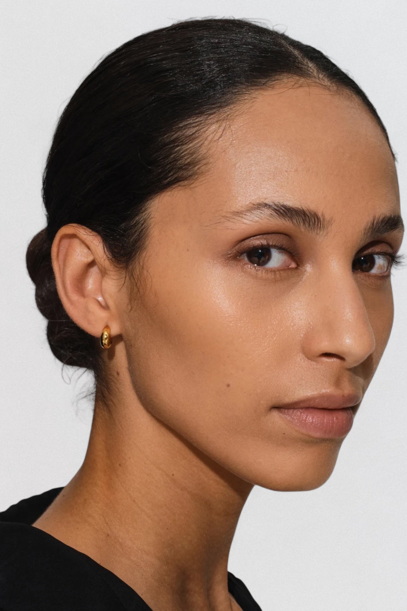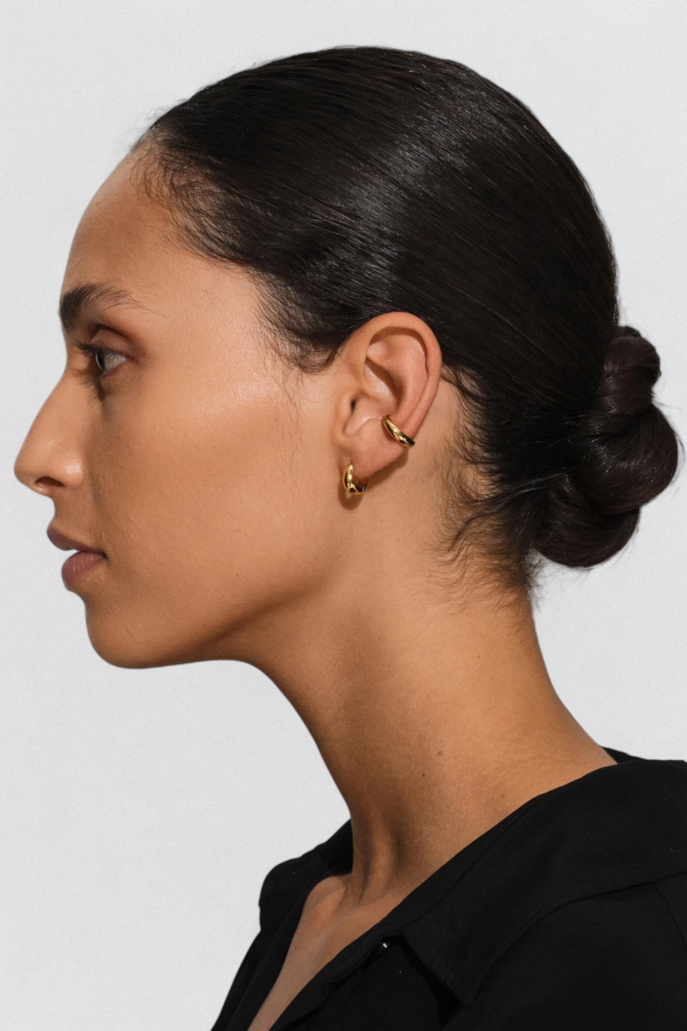 The Ice Huggies gold are miniature versions of our classic Ice Hoops, designed to comfortably hug the eartip. Combine with other Ice Hoops for a layered look.