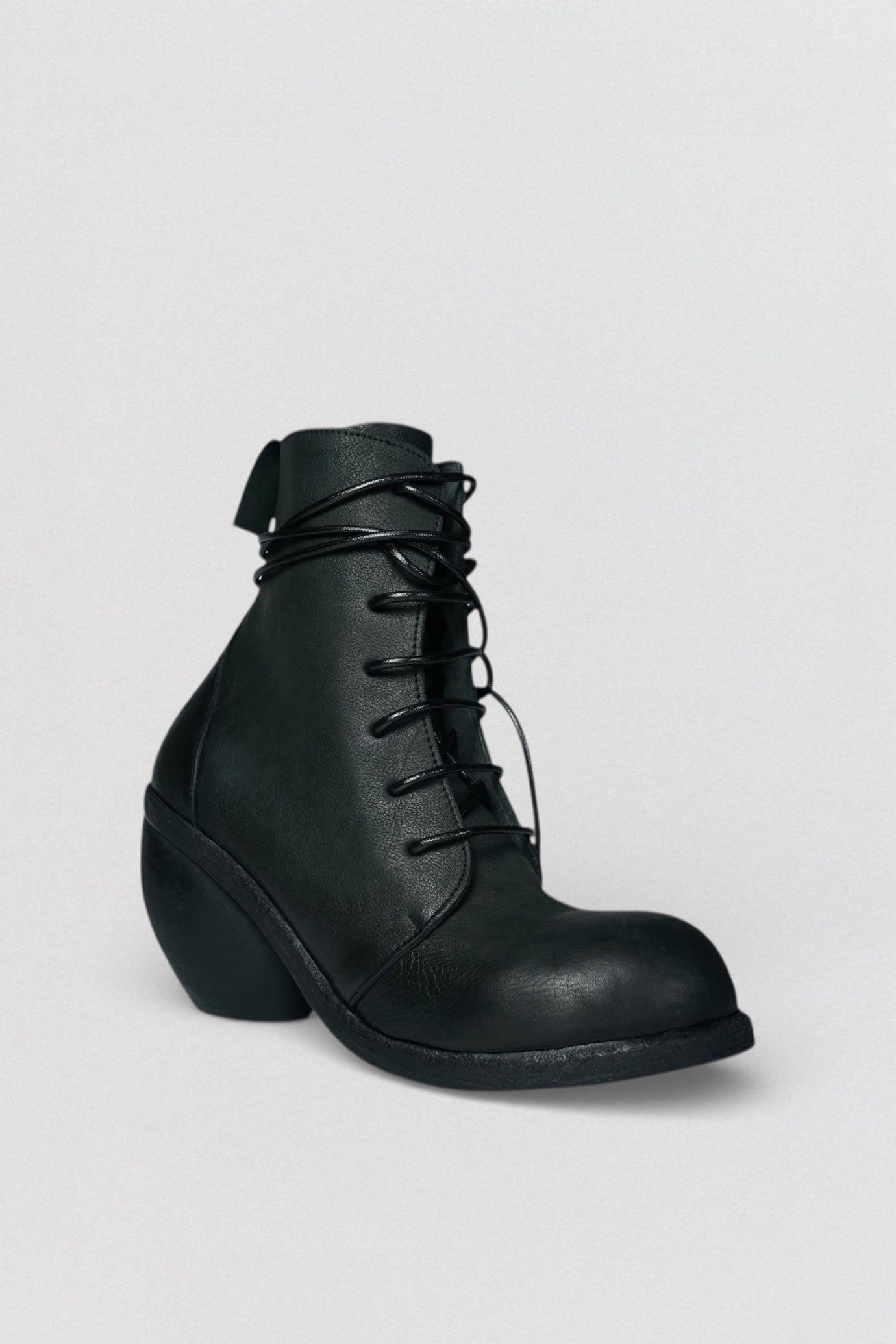Set on a sculpted solid wood heel, the silhouette balances strength and elegance, offering a bold yet refined statement. Fully handmade and produced in limited quantities, each pair reflects Nutsa Modebadze’s signature approach to material honesty and architectural design.