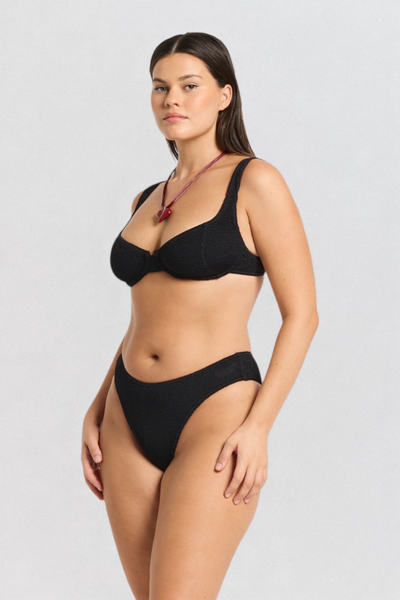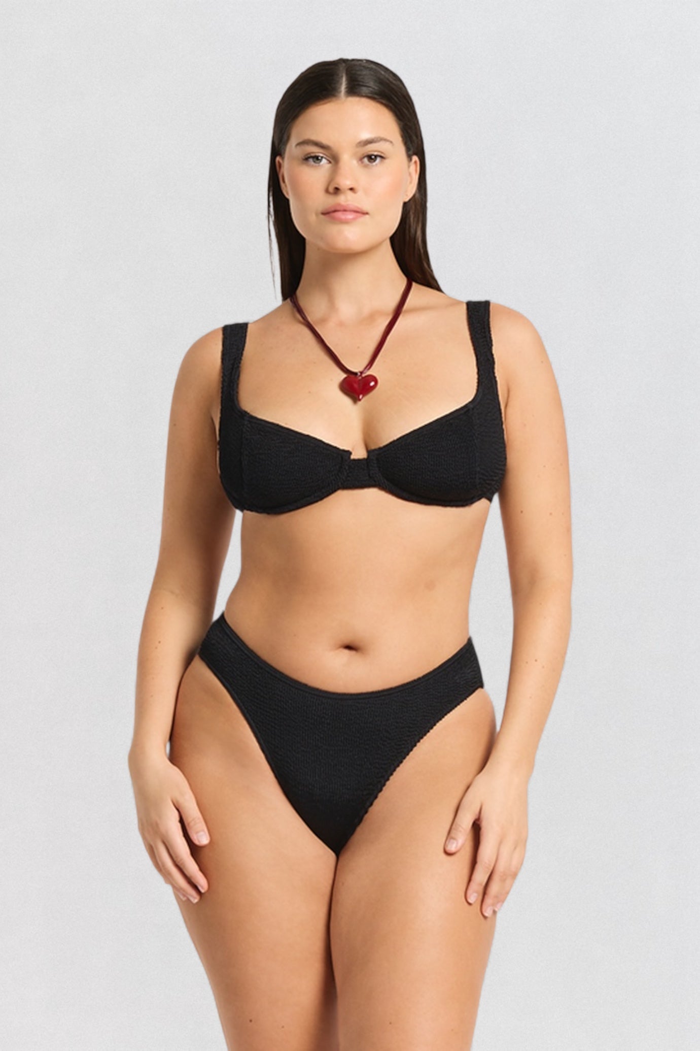 Handmade in Sydney, Australia from Bond-Eye’s signature Authentic Crinkle™ fabric, it molds comfortably to the body while offering moderate coverage—making it a flattering choice for sizes A–DD. Chic, durable, and unmistakably modern, the Levi Balconette is a timeless swim staple for any destination.