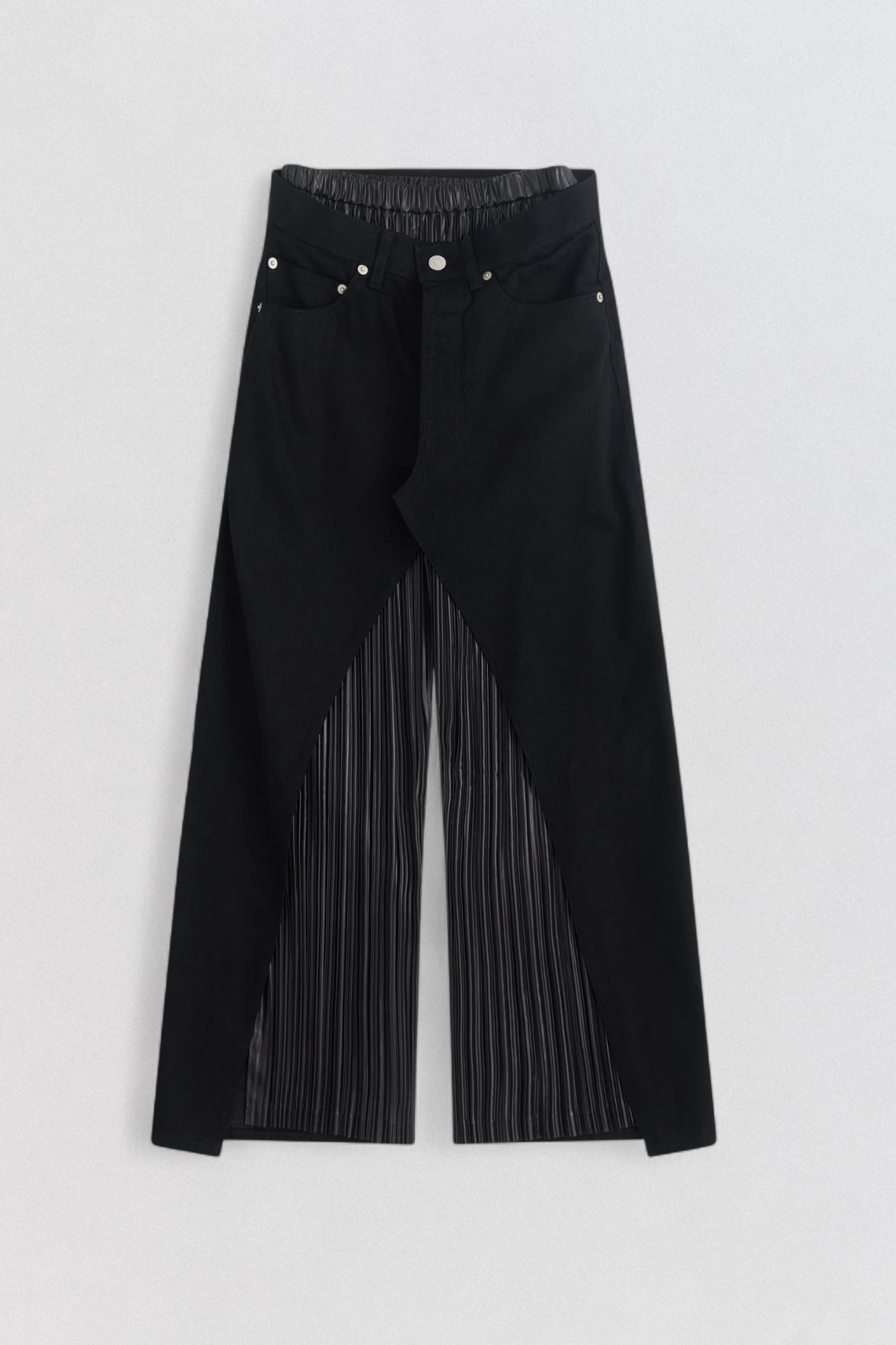 The Women’s Levi’sHybrid Pleated Jeans in Black reimagine classic tailoring with an avant-garde twist. Created in collaboration with Levi’s, this statement piece blends denim craftsmanship with modern pleating techniques. Featuring an elasticated waistband for comfort, sharp pleated front panelling, and a bold denim overlay with a structured rear panel, these trousers balance structure and fluidity. The full-length silhouette is designed to elongate the legs while offering versatile styling options from casual layering to elevated looks.