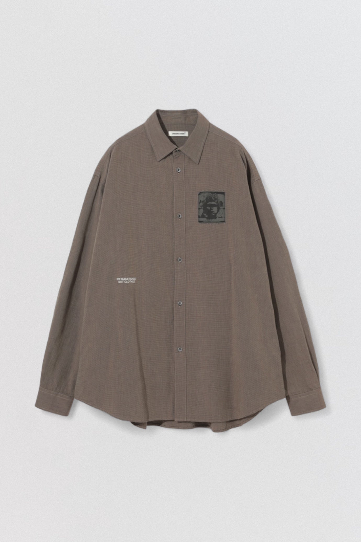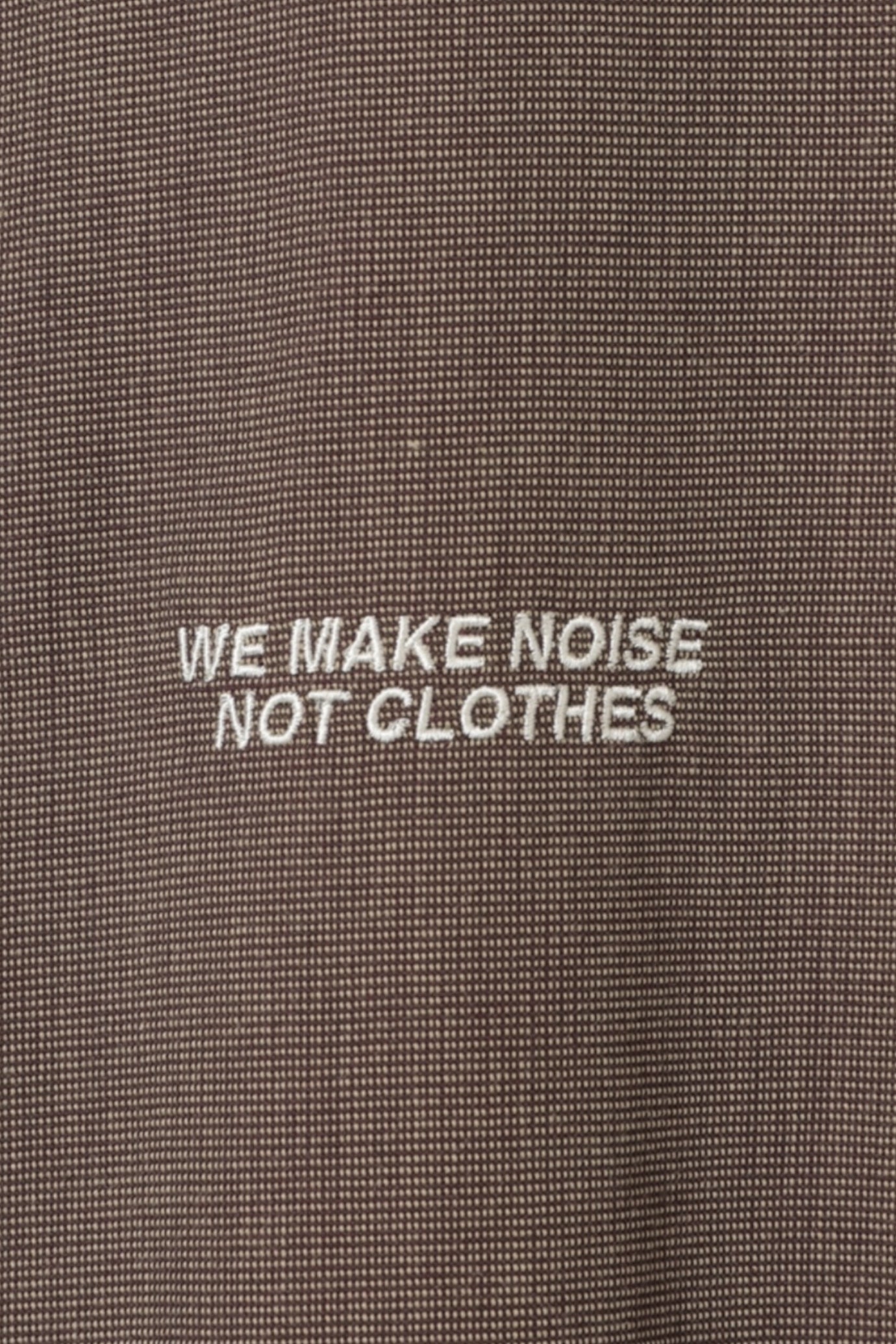 The Undercover Patches Long Sleeve Shirt blends tailored refinement with rebellious spirit. Cut from crisp cotton broadcloth, this oversized silhouette features a playful assortment of badges, embroidered patches, and functional front and side pockets. A patch above the chest pocket with an embroidered “WE MAKE NOISE NOT CLOTHES” typography on the lower side—a fitting statement from a label known for defying convention. This piece merges subcultural codes with minimalist tailoring, making it a standout layer that sparks conversation.
