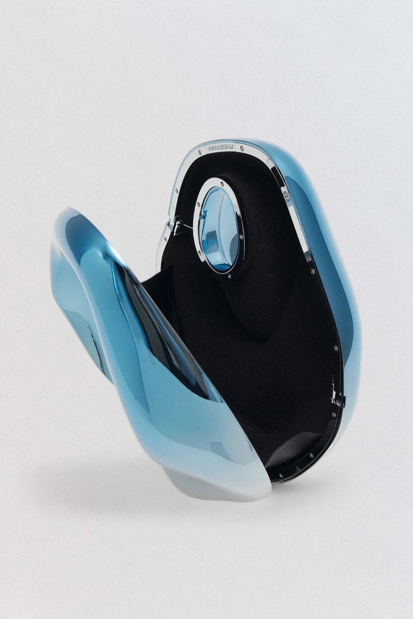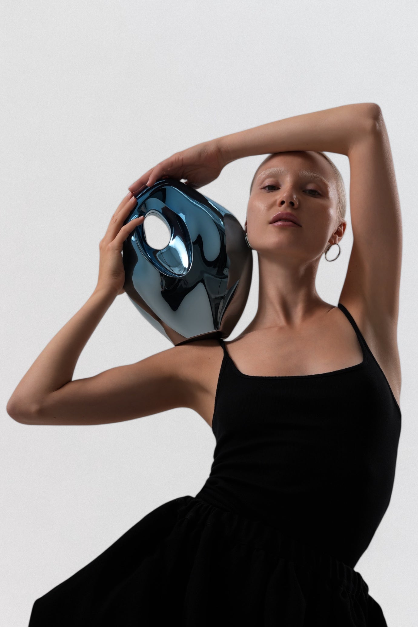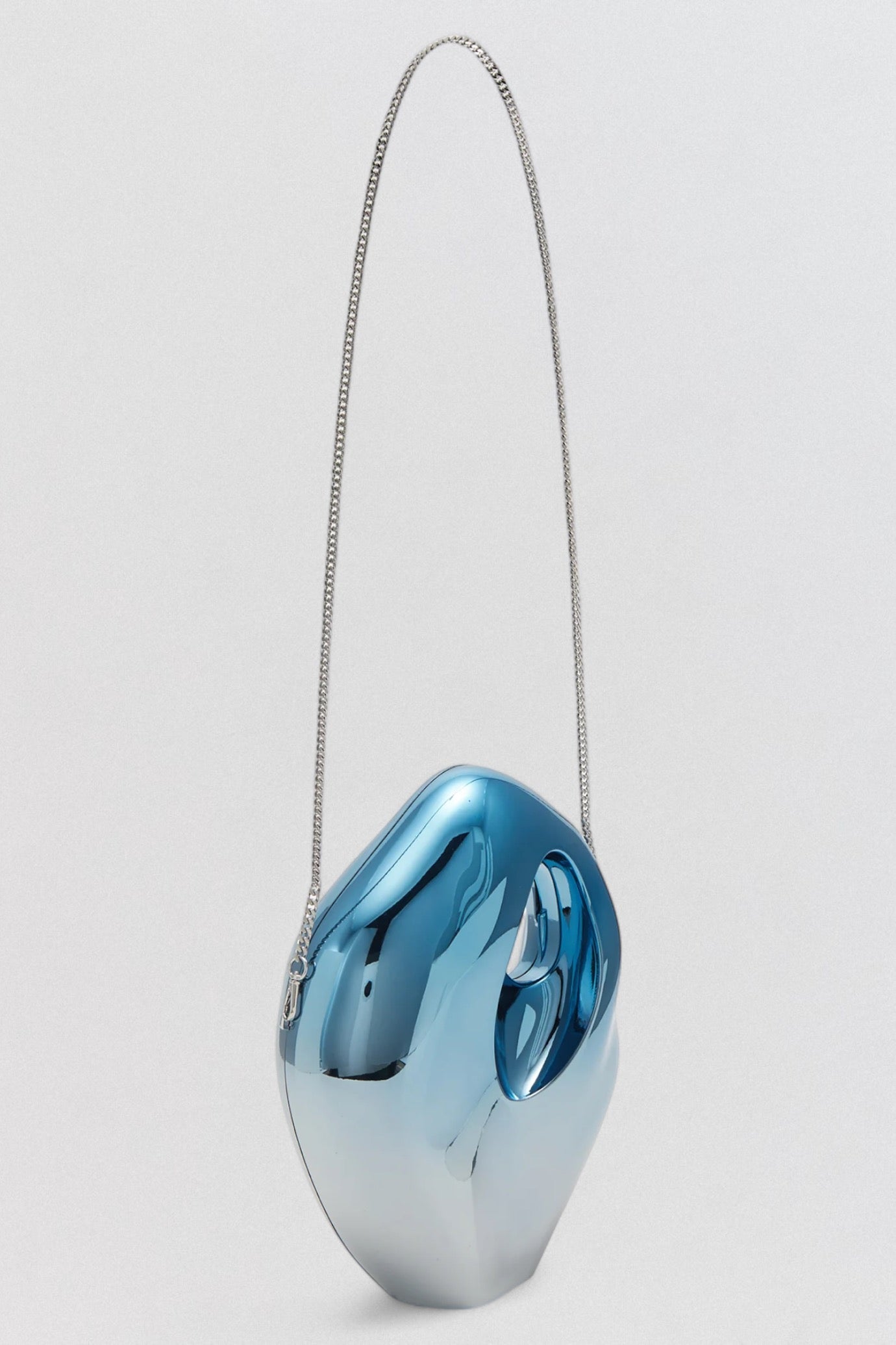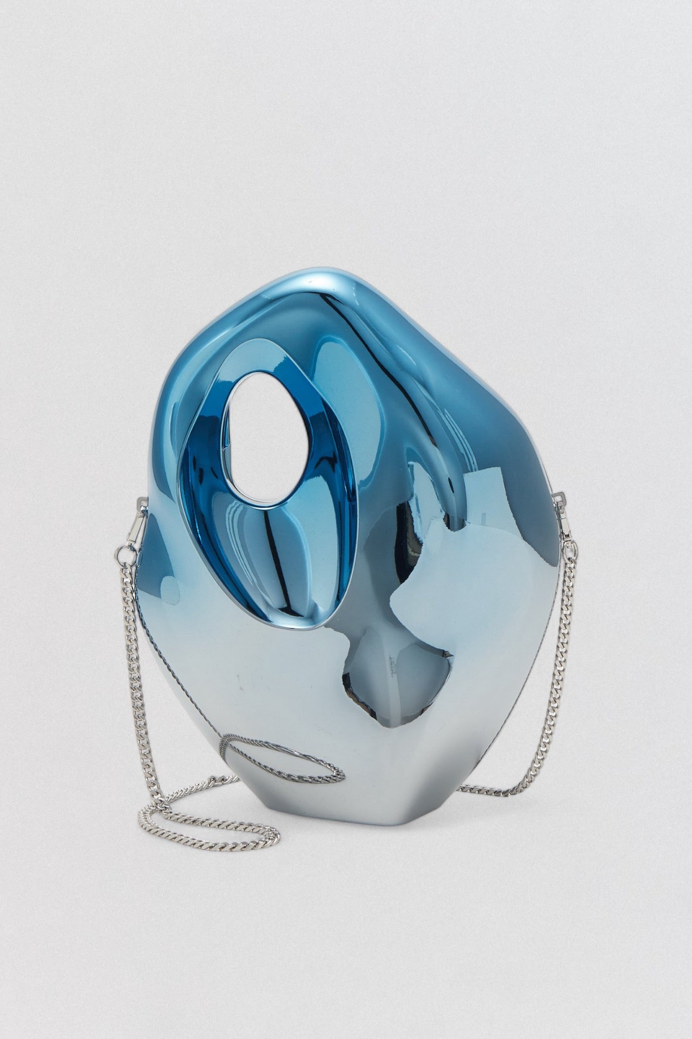 Presenting the Phil’s Third Eye Bag by Published By – now in a stunning ice blue finish. This sculptural masterpiece captures the essence of modern elegance, with its organic shape and reflective surface creating a captivating visual effect. The cool ice blue color adds a fresh, contemporary twist, while the polished chain strap and sleek hardware elements offer versatility and sophistication. Perfect for those who desire a unique, art-inspired accessory that elevates any outfit.