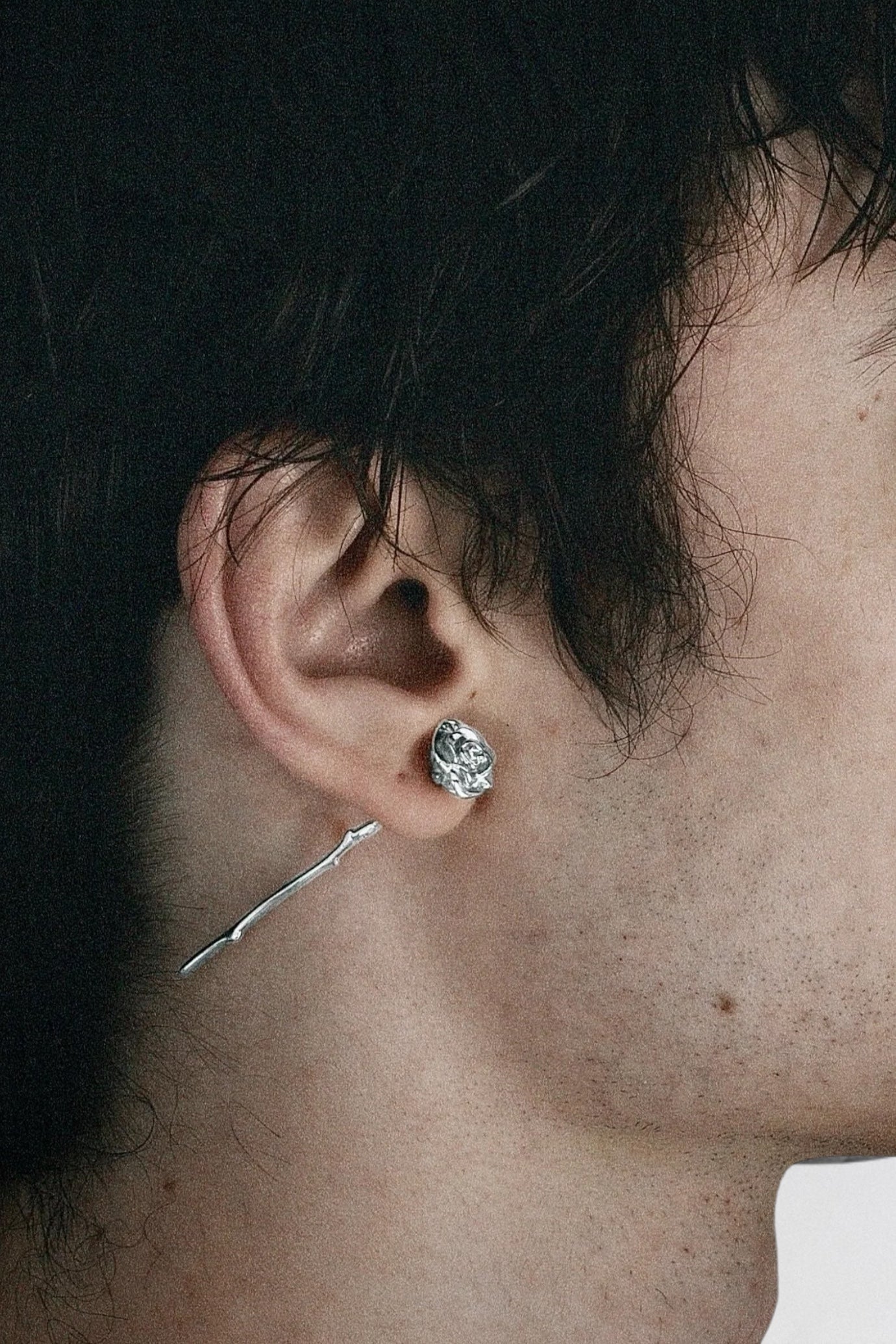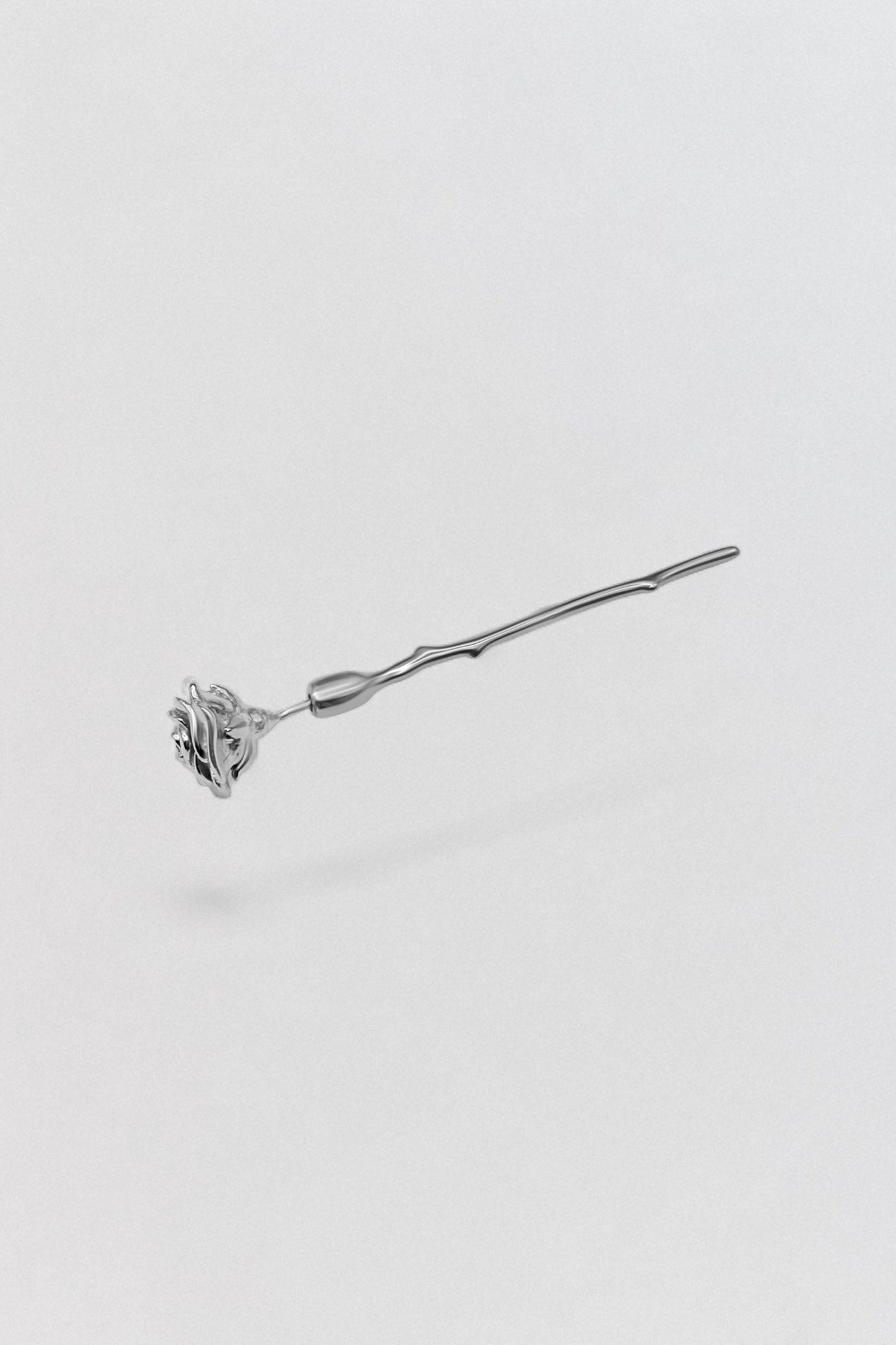 A sculptural interpretation of nature’s most romantic symbol, the Rose Earring is a signature Alan Crocetti design. Handcrafted in Portugal from premium 925 sterling silver and finished in radiant silver vermeil, its organic stem and blooming floral motif are shaped with fluid detail. Wear it as a statement of elegance, rebellion, or both.