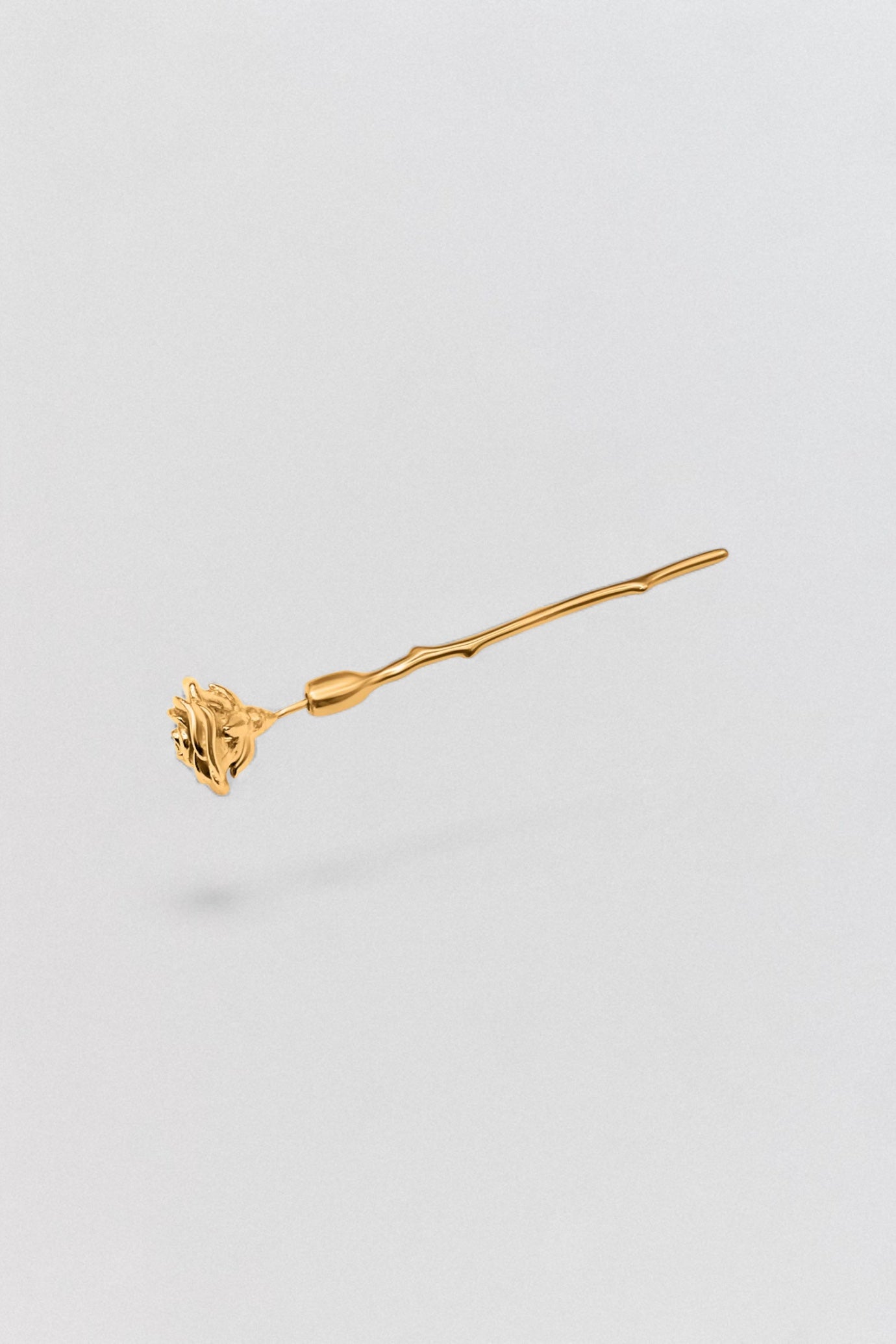 A sculptural interpretation of nature’s most romantic symbol, the Rose Earring is a signature Alan Crocetti design. Handcrafted in Portugal from premium 925 sterling silver and finished in radiant gold vermeil, its organic stem and blooming floral motif are shaped with fluid detail. Wear it as a statement of elegance, rebellion, or both.