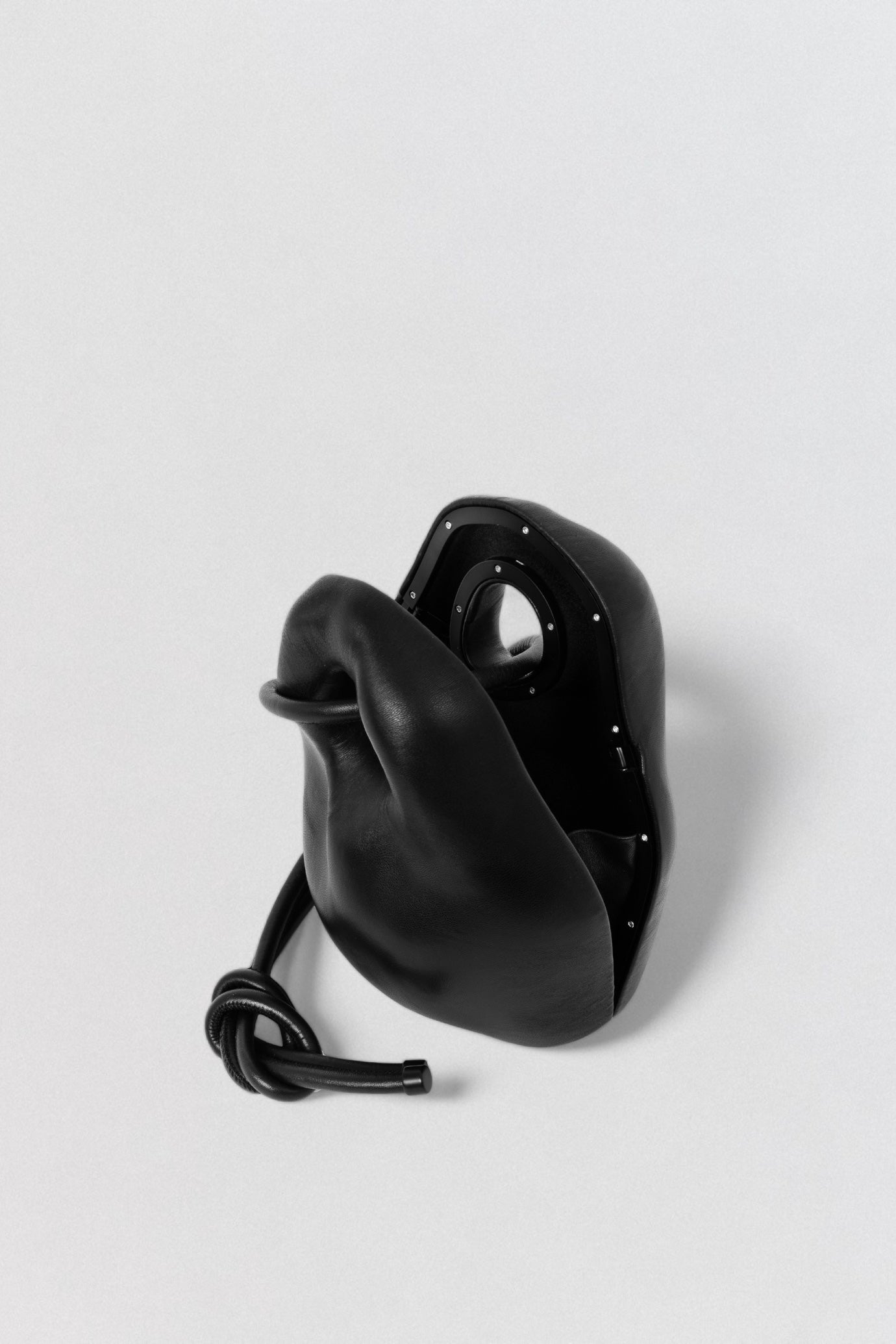 Presenting the Ruby’s Lost Stone Bag by Published By – a bold reimagining in rich black leather. Shaped like a polished stone, this bag exudes a sleek and modern allure, balancing organic curves with a refined edge. The adjustable double rope connector and chain strap offer versatility and style, making this piece a seamless addition to any wardrobe. Perfect for those who appreciate understated luxury with a touch of the avant-garde.