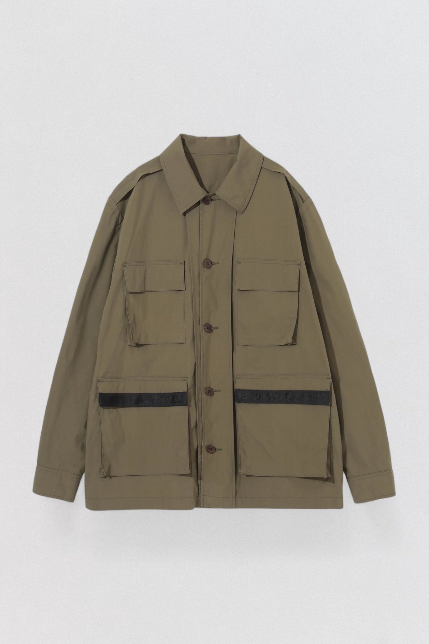 This Undercover shirt jacket brings utility to the forefront with a refined, subversive touch. Constructed from a cotton-poly blend, the lightweight outer layer is detailed with exaggerated 3D front pockets, signature tape overlays, and a discreet logo tag at the back neck. Balancing functionality with urban edge, it’s the perfect transitional piece for layering across seasons.