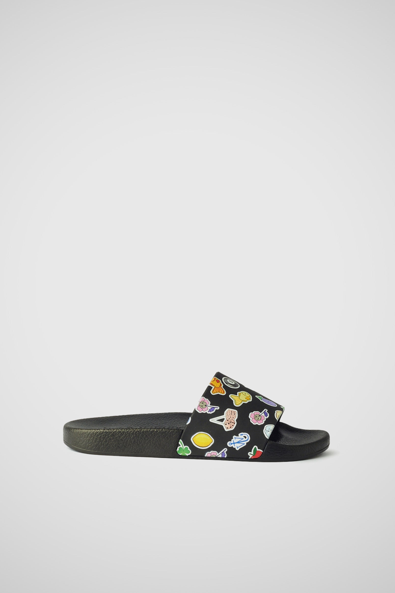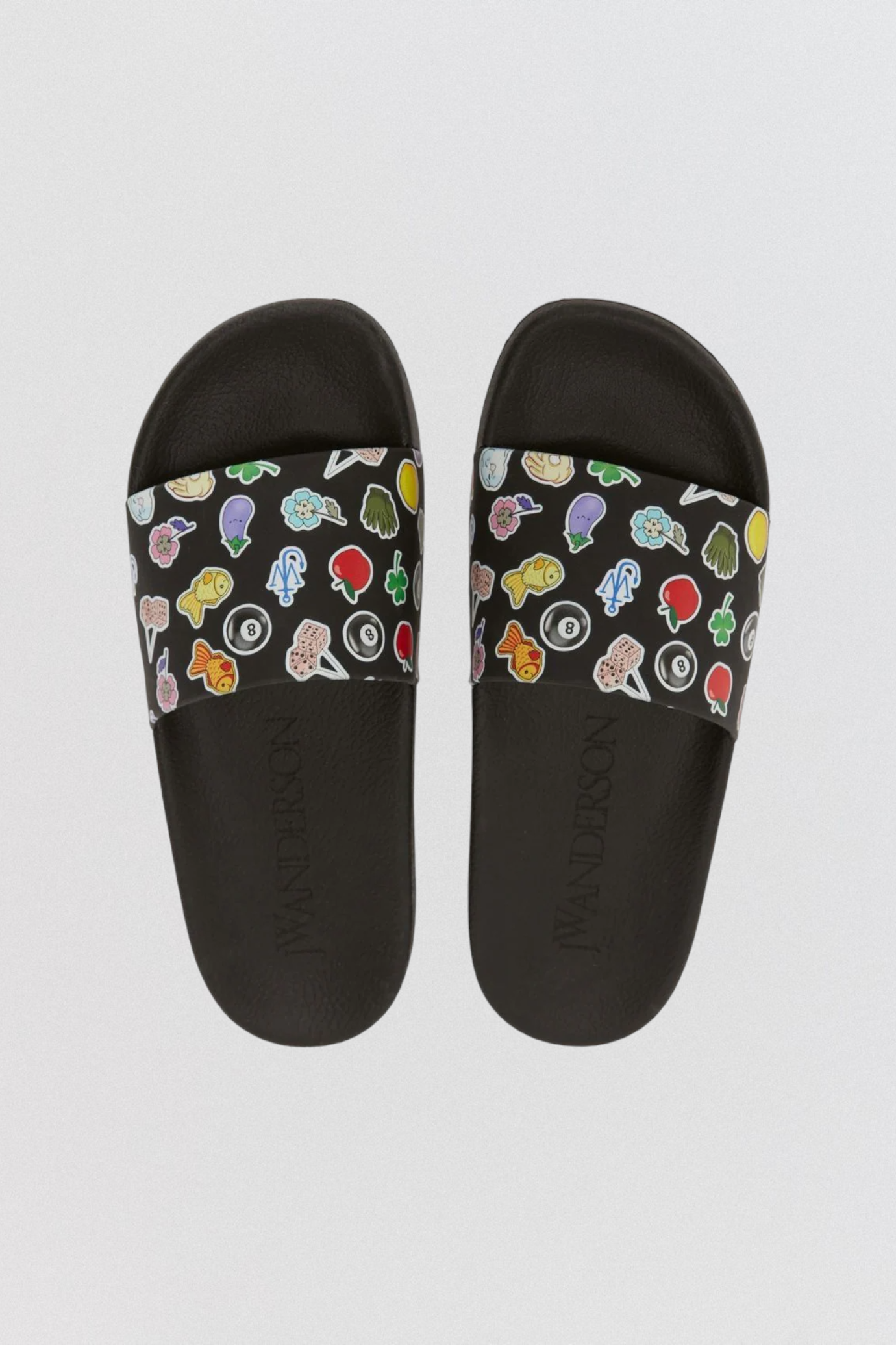 JW Anderson's take on these pool slides make fashion extremely fun. This summer staple is embellished with playful 'stickers' designs all across the uppers. Add a colourful piece on your everyday summer look with these slides.